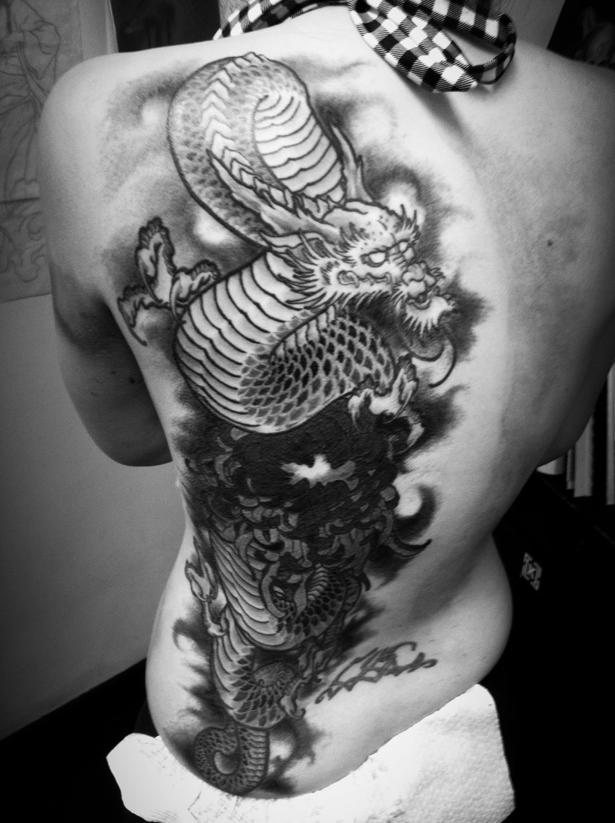 Sacred Tattoo Dragon back piece on Cat by Hamish