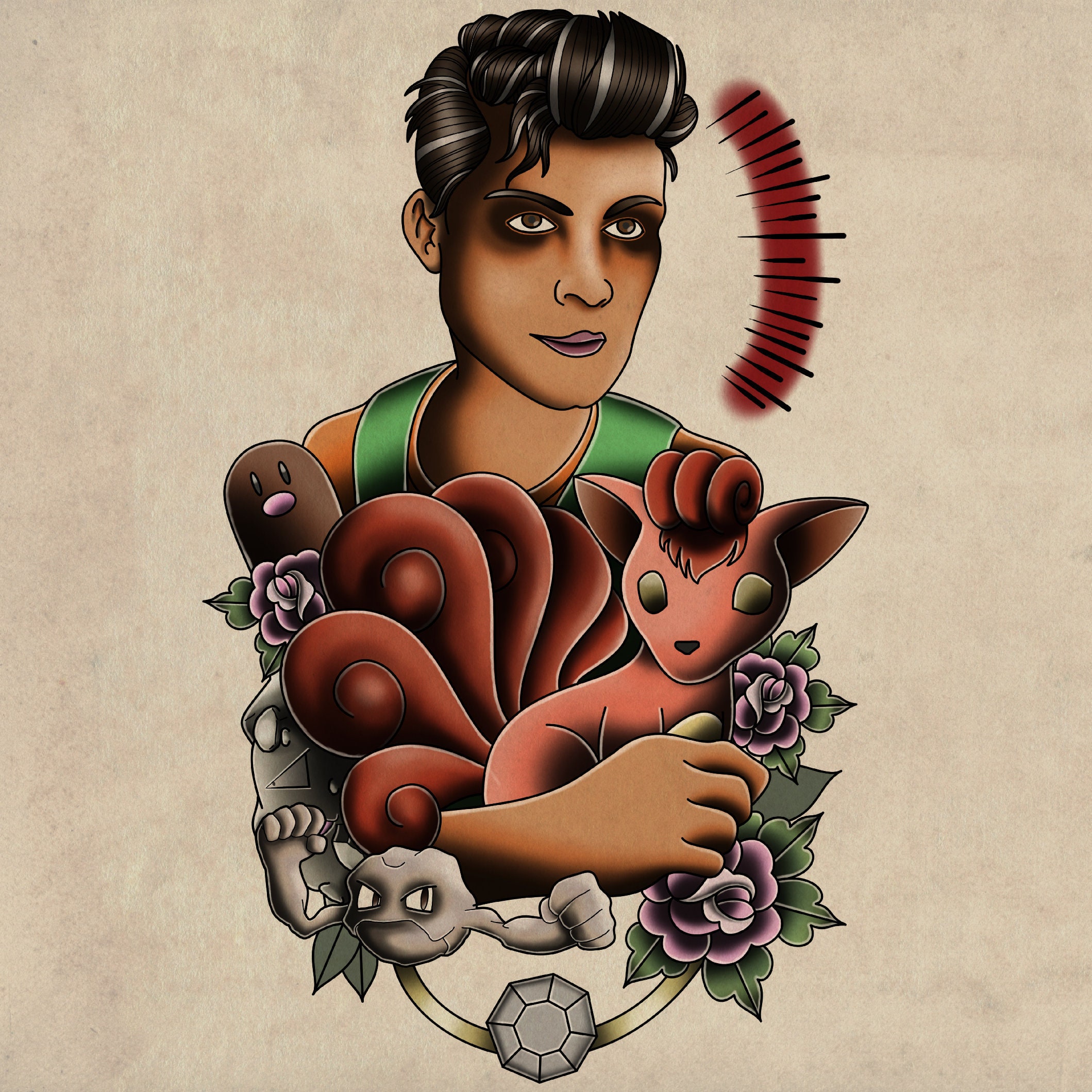Brock's Vulpix Traditional Tattoo Flash Pokemon Print Etsy