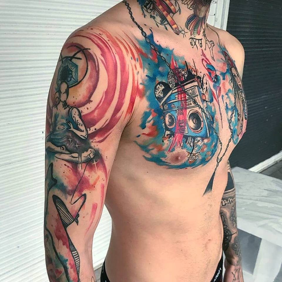 Bright Chest & Sleeve Tattoo