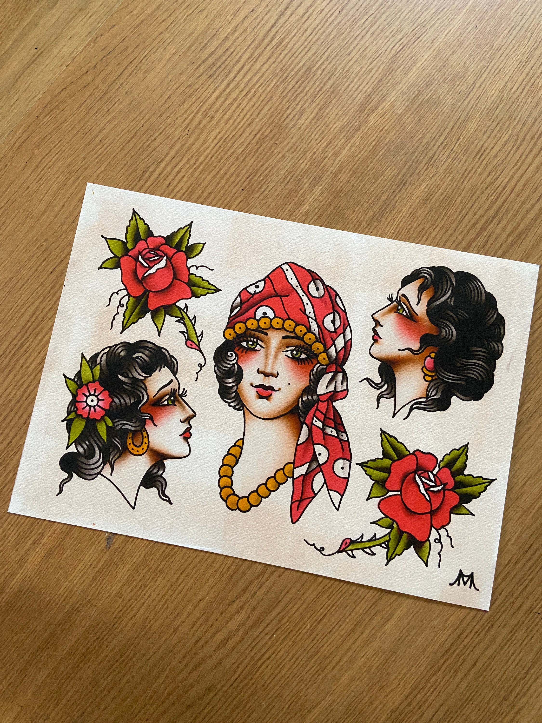 Ladies Traditional Tattoo Flash Set Etsy