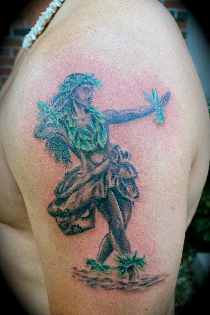 My Hula Dancer created and inked by Joshawa of Island Tat. At Ia' Oe E
