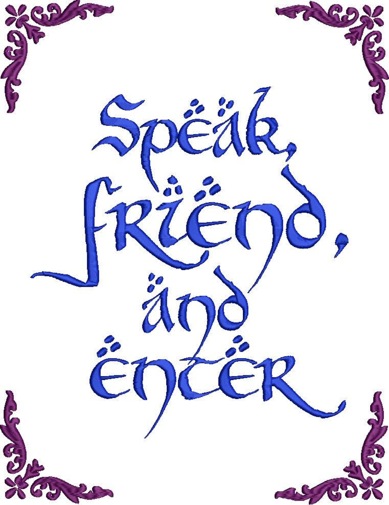 Speak Friend and Enter Embroidery Design File .vip .vp3 .hus Etsy