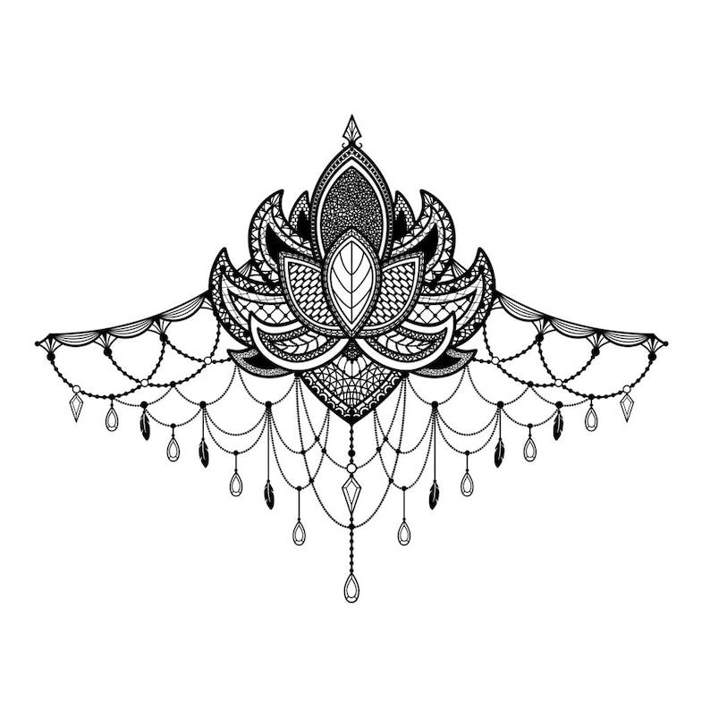 Lotus Underboob Tattoo Lotus Sternum Temporary Tattoo / Etsy
