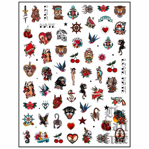 Traditional Tattoo Nail Decals Nail Art Decals Waterslide Etsy