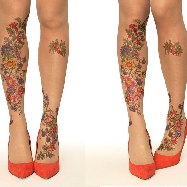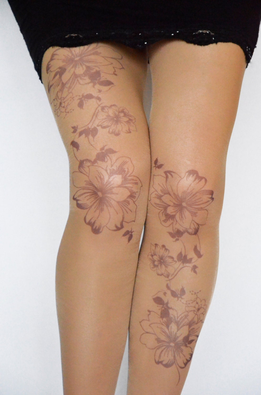 Tattoo Tights with flowershand printed Flower by colinedesign