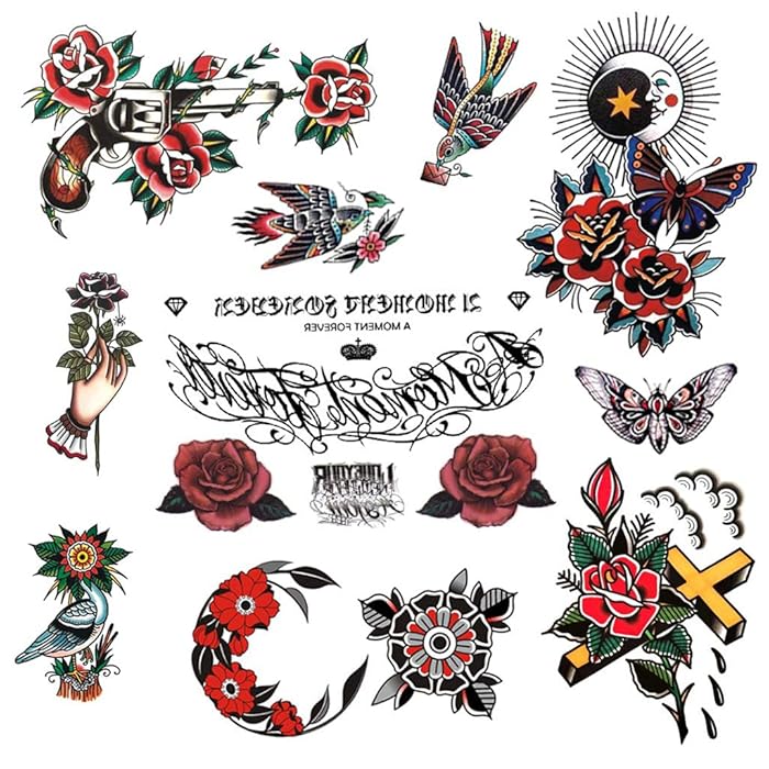 Buy PUSNMI Vintage Temporary Tattoo Traditional Tattoo Cool Classic Old