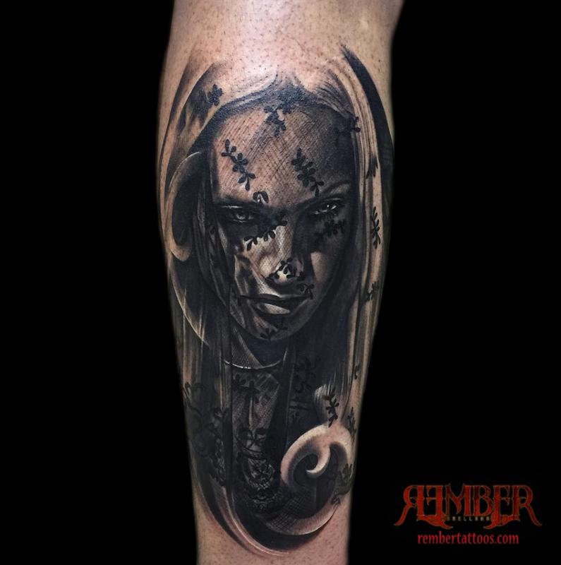 Black and Grey Veiled Lady Tattoo Love n Hate