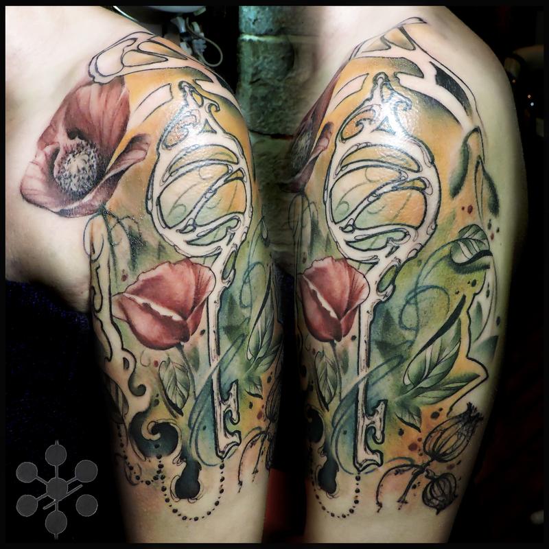 Wizard of Oz, key to Oz art nouveau half sleeve, full color with Poppy