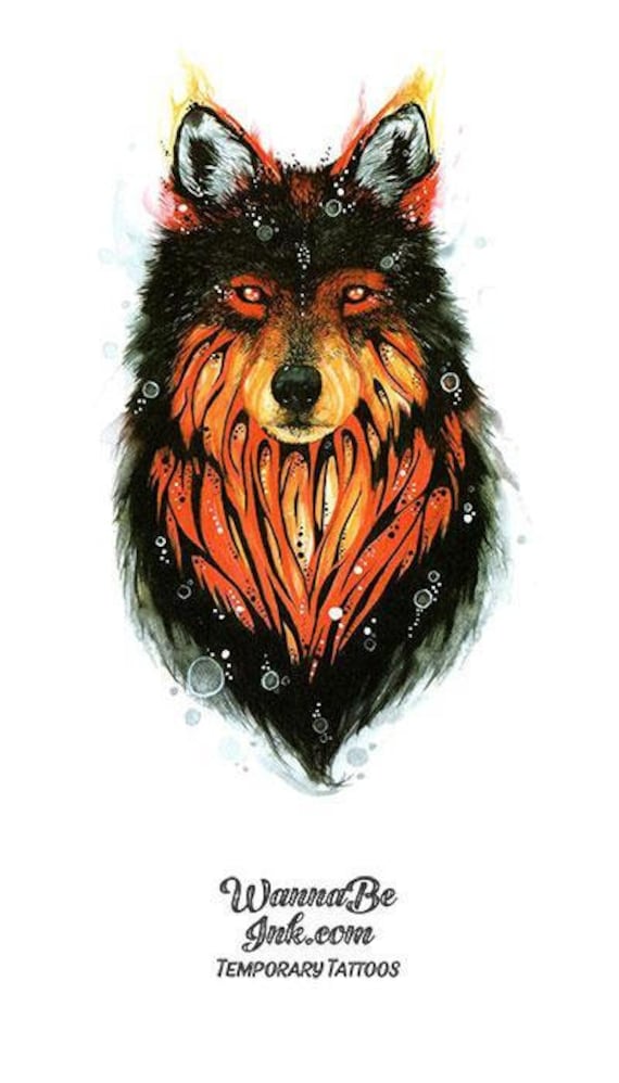 Black Wolf WIth Flames Best Temporary Tattoos Etsy